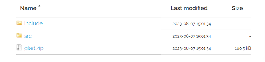 모든 파일을 다운로드 받고, include안에는 glad.h 와 KHR.h가 있으며, src안에는 glad.c 가 있다. glad.c는 Visual Studio 프로젝트에 포함시키며, glad.h 와 KHR.h는 Visual Studio IDE에서 프로젝트 설정의 include directory에 포함시켜, #incldue 매크로 적용되게 하자. 구글링하면 충분히 나온다!