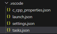 그대로 따라 해서 workplace folder (vscode에서 한 개의 프로젝트를 의미)를 만들고 hello.cpp를 오른쪽 상단에 삼각형 버튼을 눌러서 'g++'로 실행하면 현재 workplace folder안에. vscode 파일 아래에 'tasks.json', 'launch.json'이 생긴 걸 볼 수 있다. 그리고 CTRL + SHIFT + P를 눌러서 C++ configurations (JSON)을 눌러주면. vscode 안에 아래 이미지와 같은 파일이 생겨야 한다.