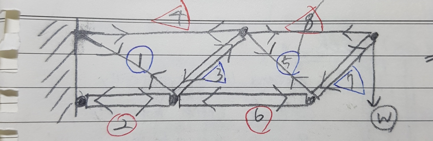 여기서 모순적인 부분은, 직접 부재 1,3,5,7 은 버티는 응력의 크기가 비슷한데, 간접 부재 2,4,6,8 은 안쪽 부재인 2, 4가 더 크다.